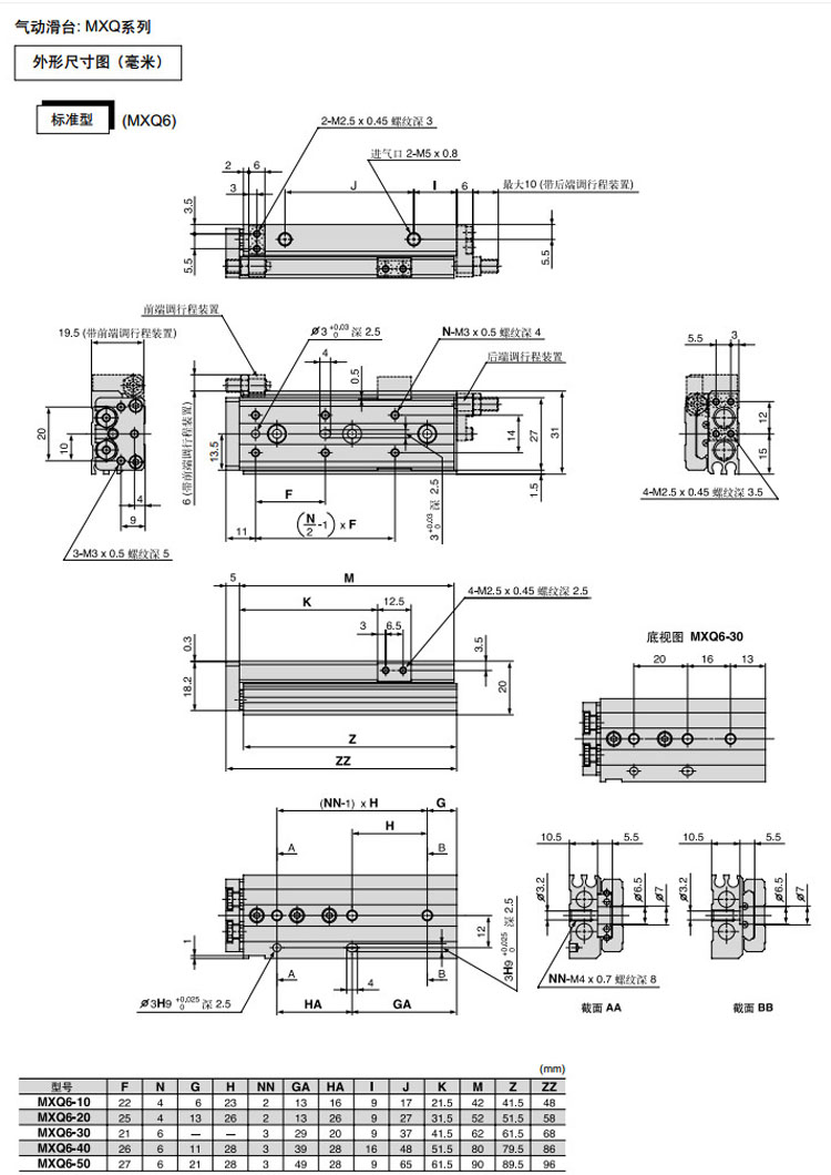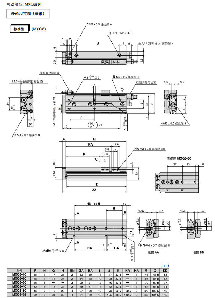 MXQ6-10,MXQ8-10,MXQ12-10,MXQ16-10,MXQ20-10,MXQ25-10,MXQ6-20,SMC氣動滑臺氣缸