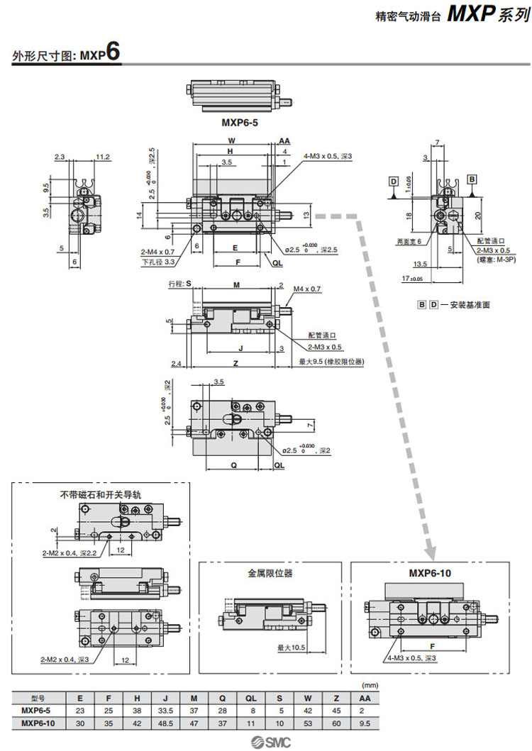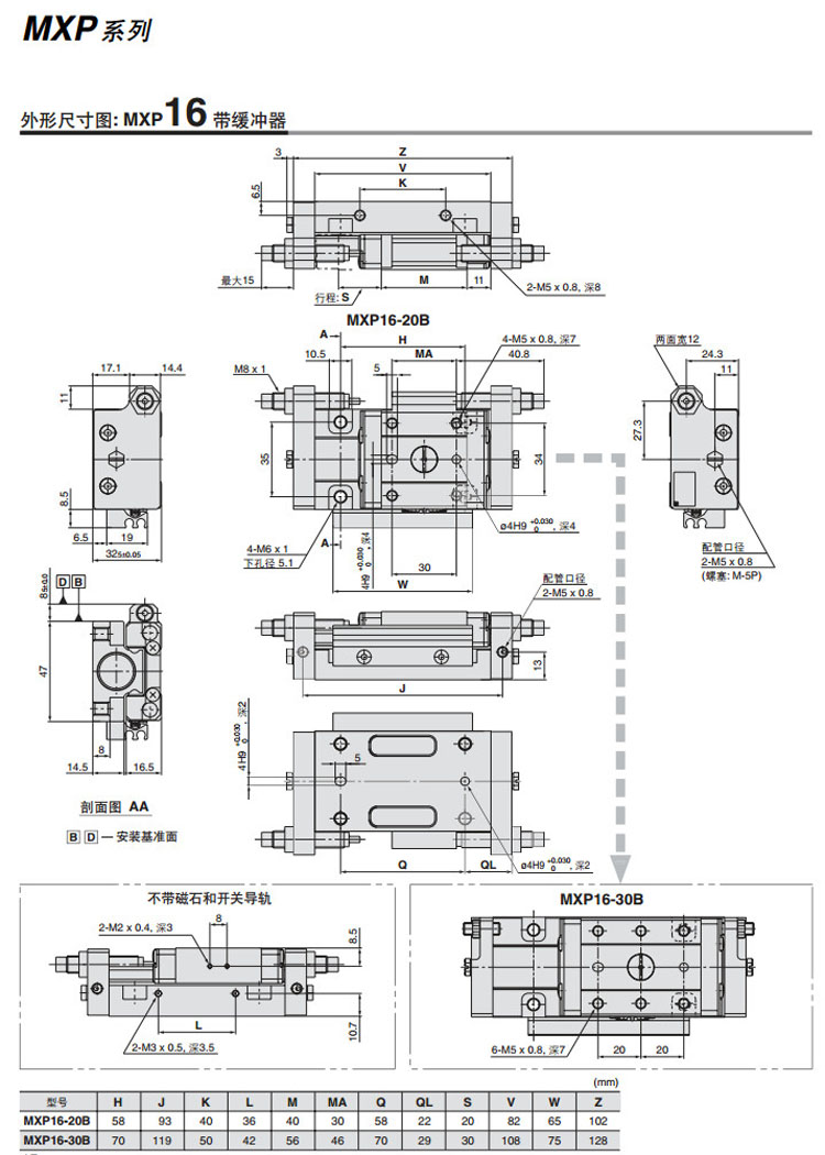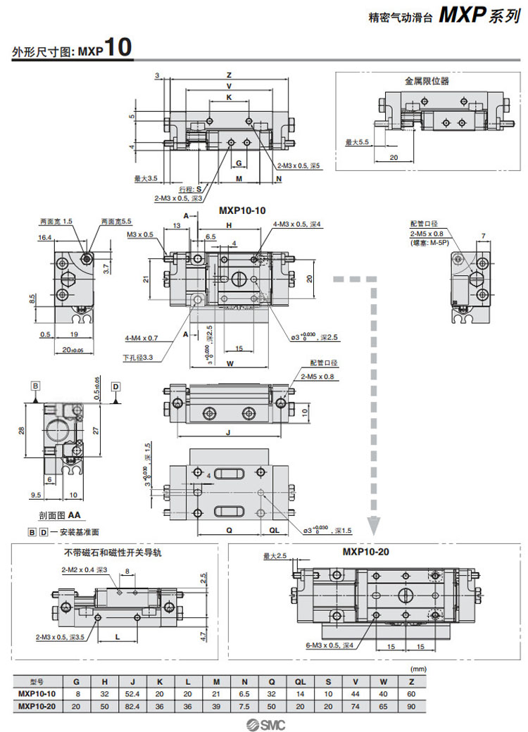 MXP6-5,MXP8-10,MXP10-10,MXP12-15,MXP16-20,MXPJ6-5,MXP6-10,MXP8-20,SMC精密氣動(dòng)滑臺(tái)氣缸