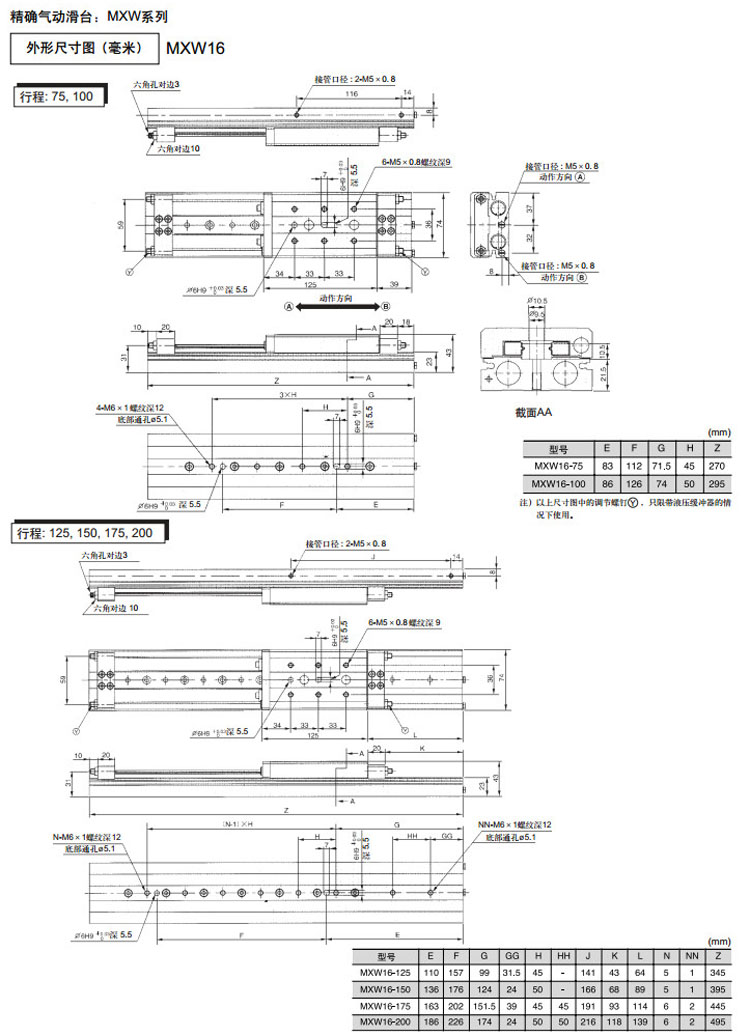 MXW16-200,MXW20-125,MXW20-150,MXW20-175,MXW20-200,MXW20-225,MXW20-250,MXW25-125,MXW25-150,