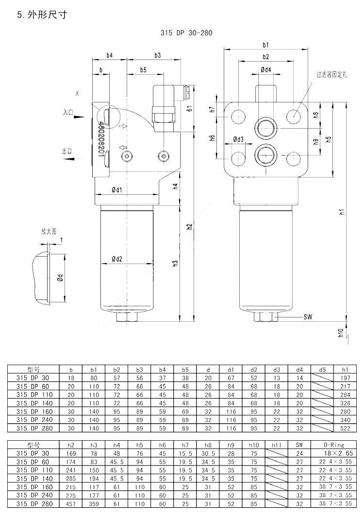 315DP30,315DP60,315DP110,315DP140,315DP160,315DP240,315DP280,315DP30KN3,閥塊側(cè)部過(guò)濾器