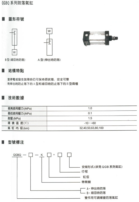 QGBQ-A-K32,QGBQ-A-K40,QGBQ-A-K50,QGBQ-A-K63,QGBQ-A-K80,QGBQ-A-K100,防落氣缸 |