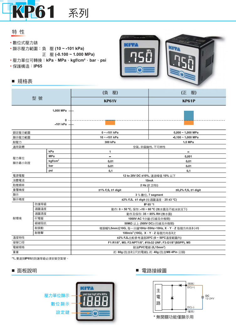 KP61P-F1,KP61P-F2,KP61P-F3,KP61V-F1,KP61V-F2,KP61V-F3,KP61P-F1-QD,KP61P-F2-QD,KP61P-F3-QD,KIDA壓力表