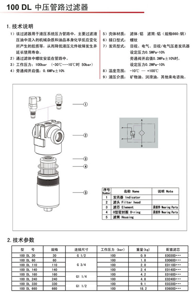100DL30,100DL60,100DL110,100DL140,100DL160,100DL240,100DL330,100DL660,中壓管路過(guò)濾器
