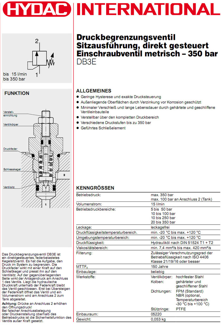 DB3E-02X-50V,DB3E-02X-100V,DB3E-02X-250V,DB3E-02X-350V,HYDAC直動減壓閥 |