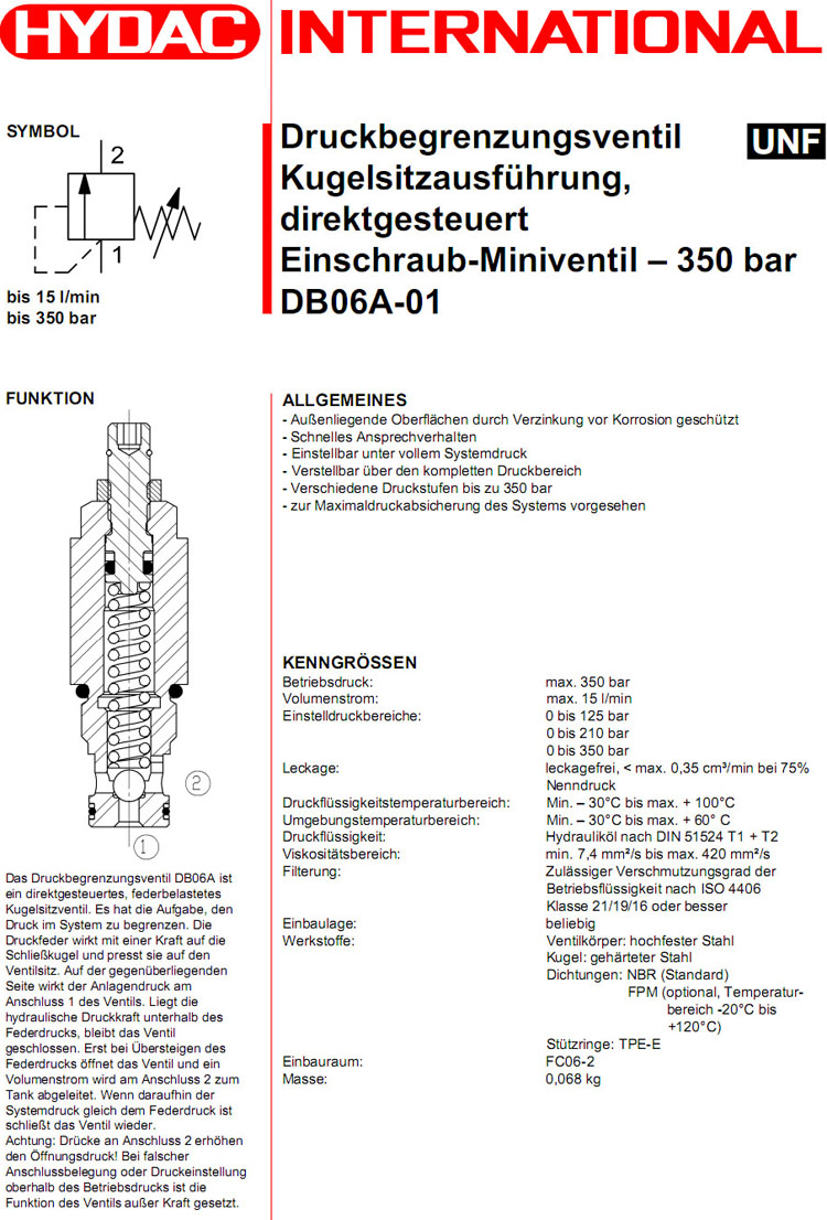 DB06A-01-C-N-180V,DB06A-01-C-N-330V,DB06A-01-C-N-500V,HYDAC直動(dòng)減壓閥