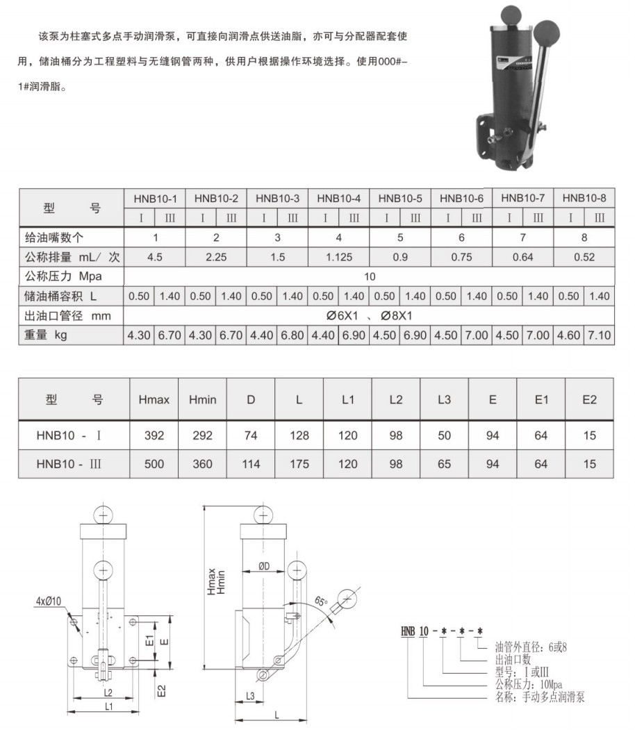 HNB10-1,HNB10-2,HNB10-3,HNB10-4,HNB10-5,HNB10-6,HNB10-7,HNB10-8,手動(dòng)油脂潤(rùn)滑泵