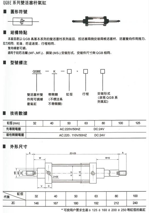 QGBE-K-32,QGBE-K-40,QGBE-K-50,QGBE-K-63,QGBE-K-80,雙活塞桿氣缸