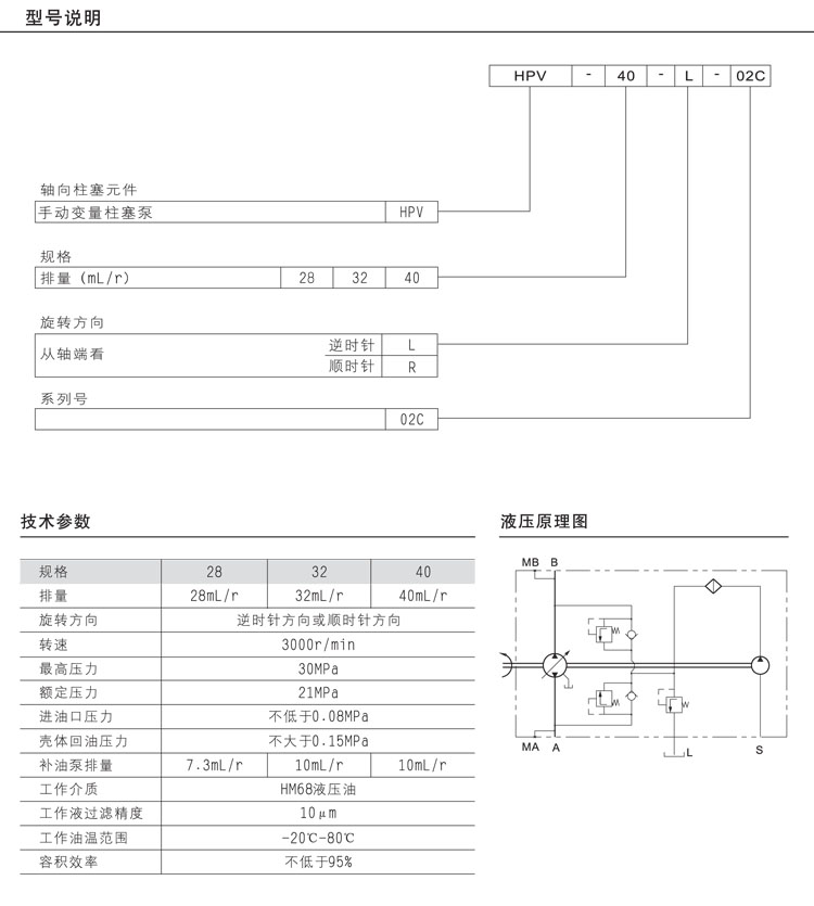HPV-28-L-02C,HPV-32-L-02C,HPV-40-L-02C,HPV-28-R-02C,HPV-32-R-02C,HPV-40-R-02C,手動變量柱塞泵