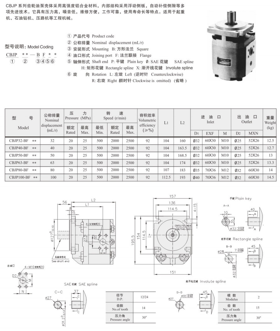 CBJP32-BF,CBJP40-BF,CBJP50-BF,CBJP63-BF,CBJP80-BF,CBJP100-BF,齒輪油泵 |