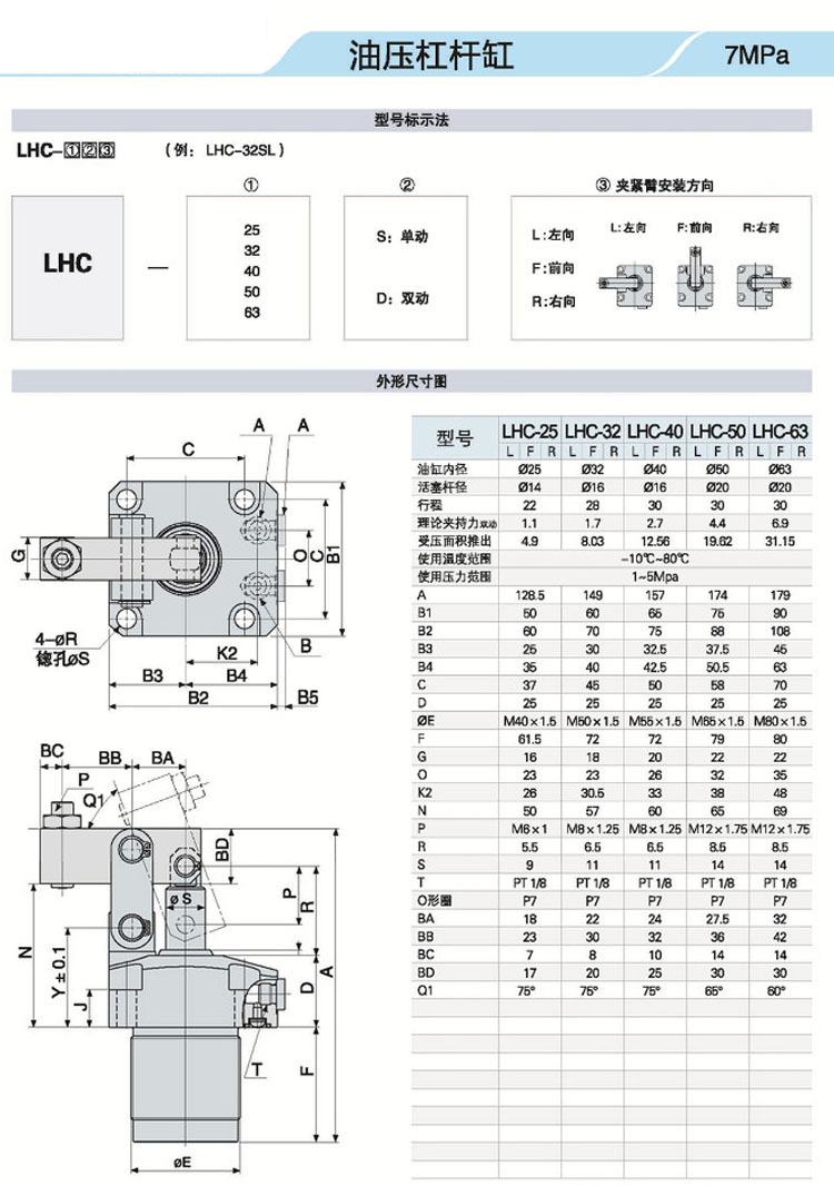 LHC-25,LHC-32,LHC-40,LHC-50,LHC-63,杠桿式油壓缸