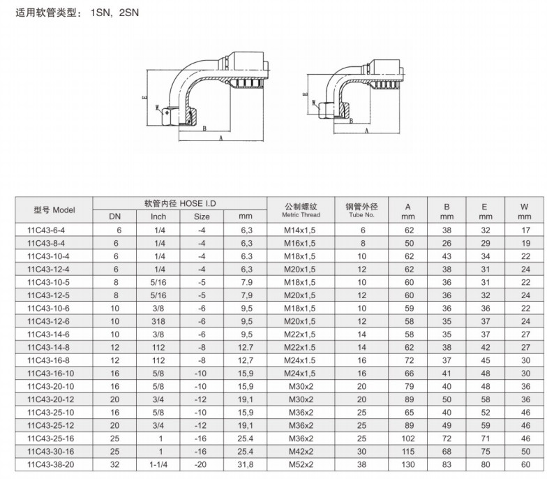 11C43-6-4,11C43-8-4,11C43-10-4,11C43-12-4,11C43-10-5,11C43-10-6,扣壓式軟管接頭
