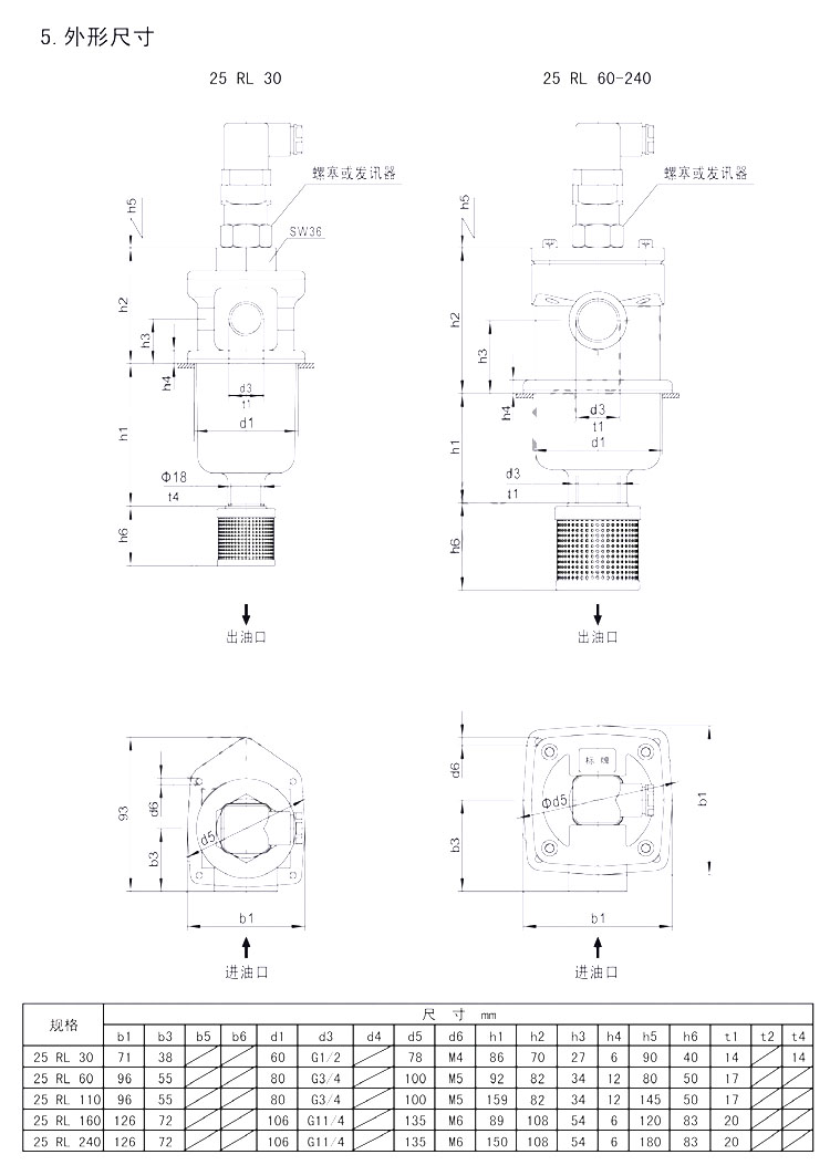 25RL30,25RL60,25RL110,25RL160,25RL240,25RL330,25RL660,25RL950,25RL1300,25RL1300KN3FAB20PD,單筒回油過(guò)濾器 |