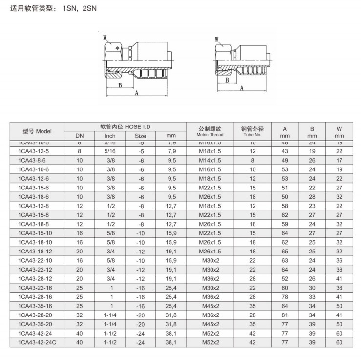 1CA43-6-4,1CA43-8-4,1CA43-10-4,1CA43-12-4,1CA43-8-5,1CA43-0-5,扣壓式軟管接頭