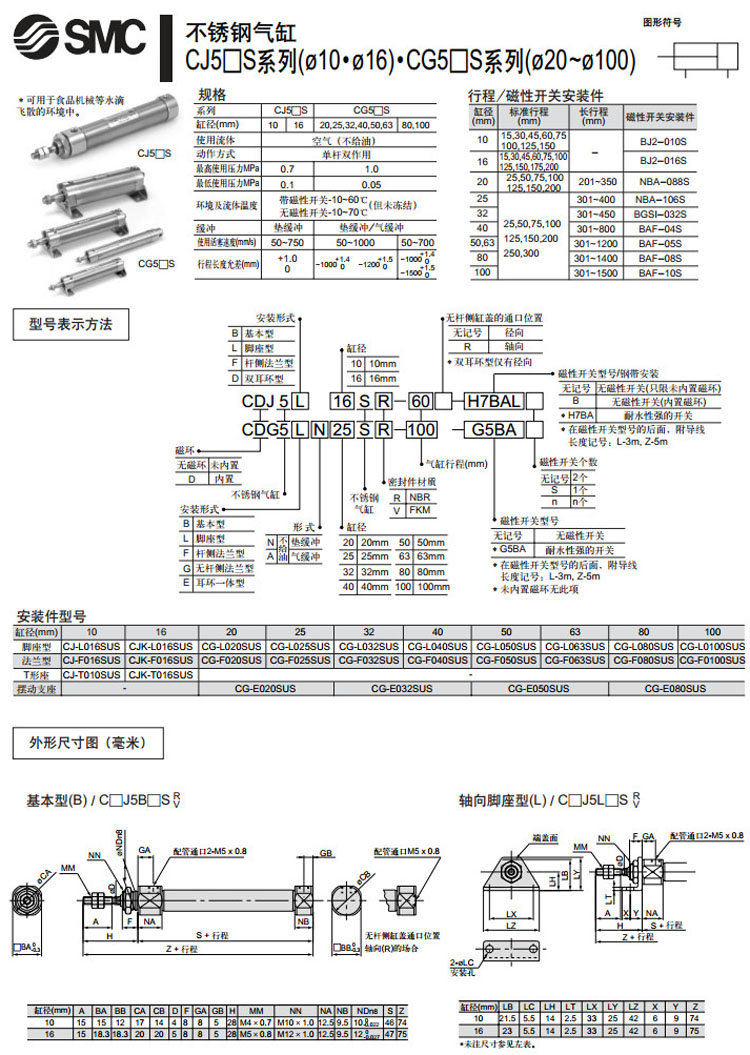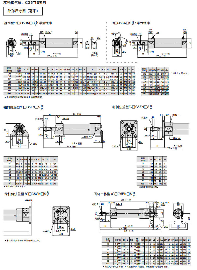 CG5BA20S,CG5LA20S,CG5FA20S,CG5GA20S,CG5EA20S,CDG5BA20S,CDG5LA20S,CDG5FA20S,CDG5GA20S,CDG5EA20S,SMC不銹鋼氣缸
