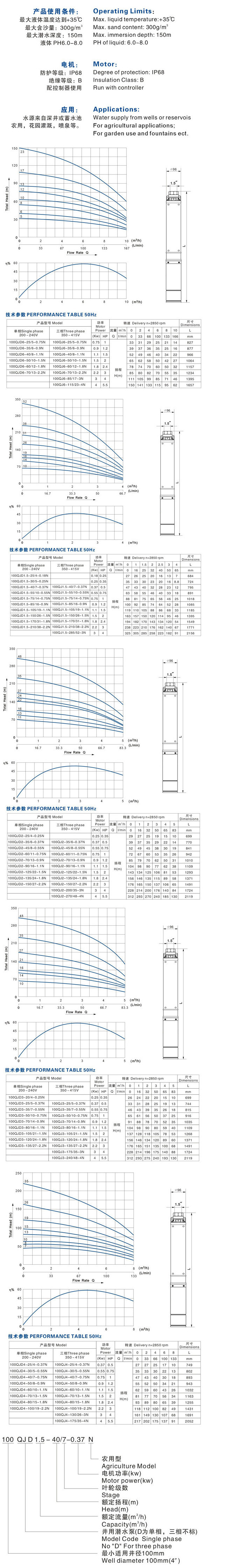 100QJ1.5-40/7-0.37N,100QJ2-35/6-0.37N,100QJ3-25/5-0.37N,100QJ4-25/4-0.37N,100QJ6-70/5-2.2N,井用潛水電泵 |