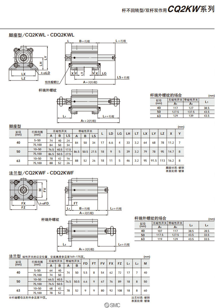 CQ2KWL40-35D,CQ2KWL40-40D,CQ2KWL40-45D,CQ2KWL40-50D,CQ2KWL40-75D,CQ2KWL40-100D,CQ2KWL50-10D,CQ2KWL50-15D,CQ2KWL50-20D,