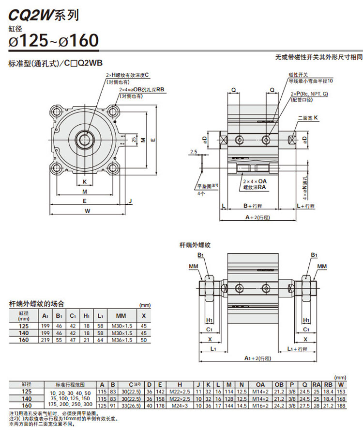 CQ2WB125,CQ2WB140,CQ2WB160,CQ2WB180,CQ2WB200,CDQ2WB125,CDQ2WB140,CDQ2WB160,CDQ2WB180,CDQ2WB200,SMC薄型氣缸