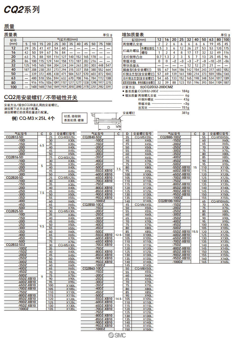 CQ2B20-50,CQ2B25-50,CQ2B32-50,CQ2B40-50,CQ2B50-50,CQ2B63-50,CQ2B80-50,CQ2B100-50,CQ2B32-100,CQ2B40-100,