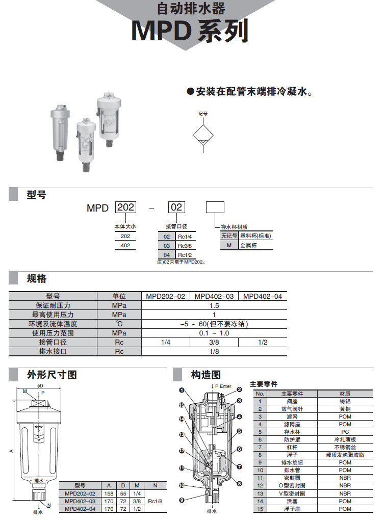 MPD202-02,MPD402-03,MPD402-04,MPD202-02M,MPD402-03M,MPD402-04M,自動排水器