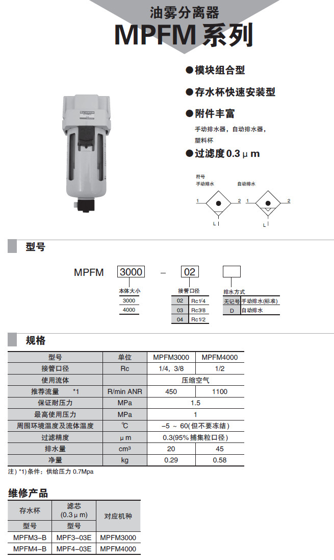 MPFM3000-02,MPFM3000-03,MPFM3000-04,MPFM4000-02,MPFM4000-03,MPFM4000-04,油霧分離器