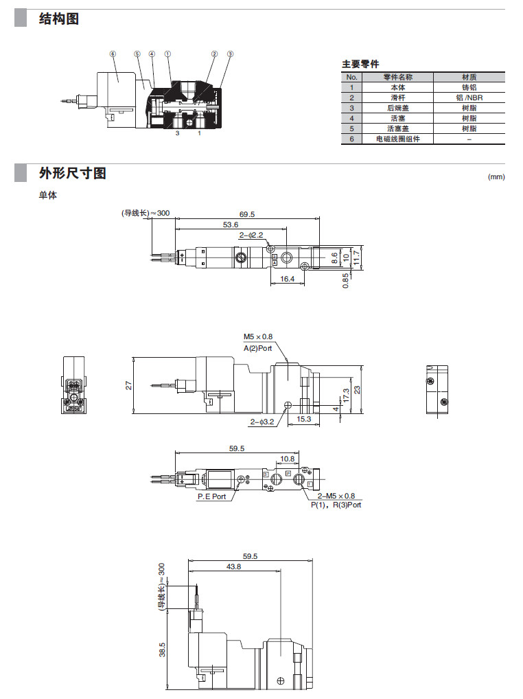 CKV0190-1E-M5,CKV0190-2E-M5,CKV0190-4E-M5,CKV0190-4P-M5,3 通先導(dǎo)式電磁閥