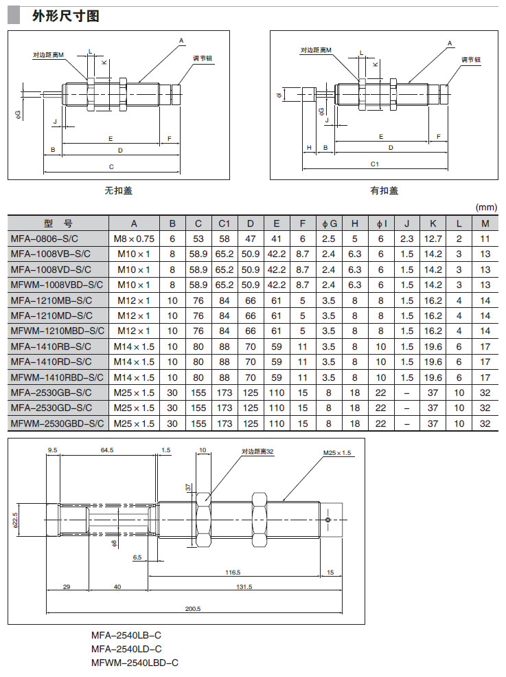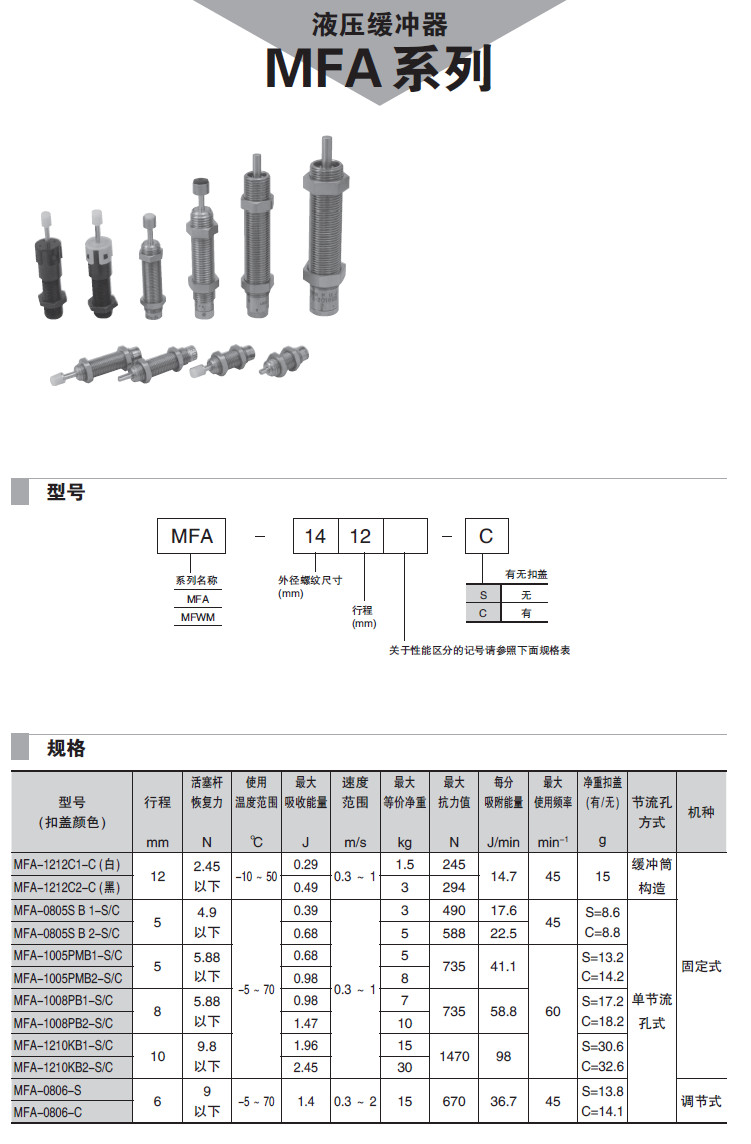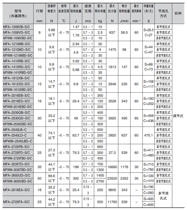 MFA-1212C1-C,MFA-1008PB1-S,MFWM-2540LBD-C,MFA-1612XD-C,MFWM-2016EBD-S,液壓緩沖器