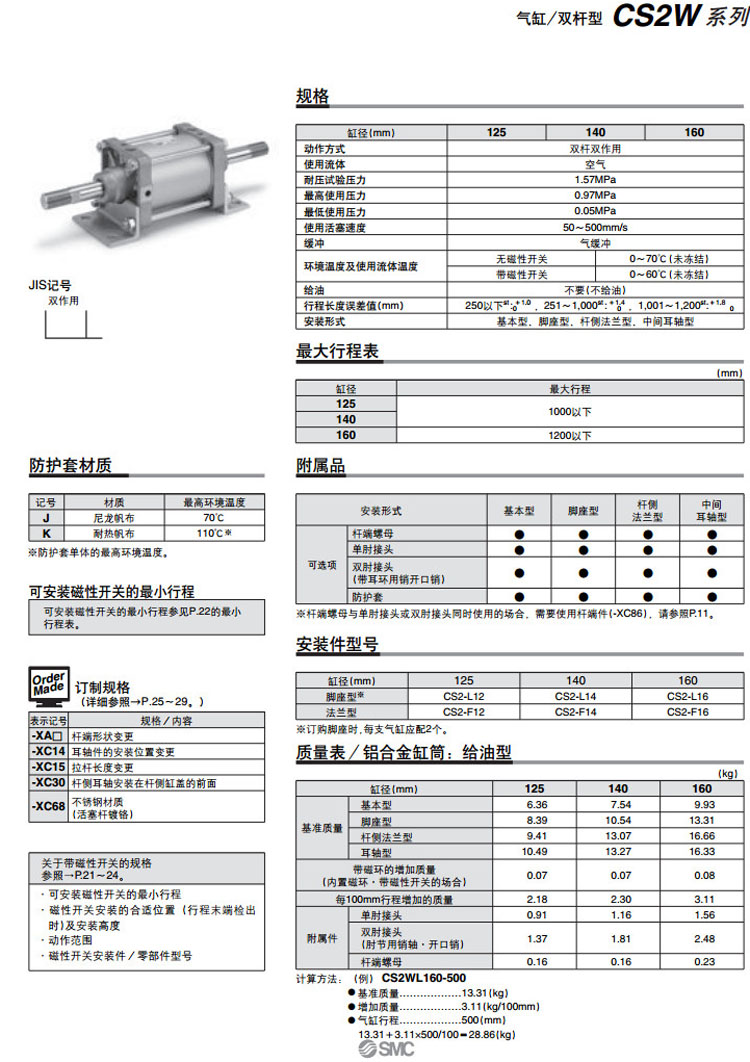 CS2WB125,CS2WL125,CS2WF125,CS2WT125,CDS2WB125,CDS2WL125,CDS2WF125,CDS2WT125,SMC雙桿型氣缸