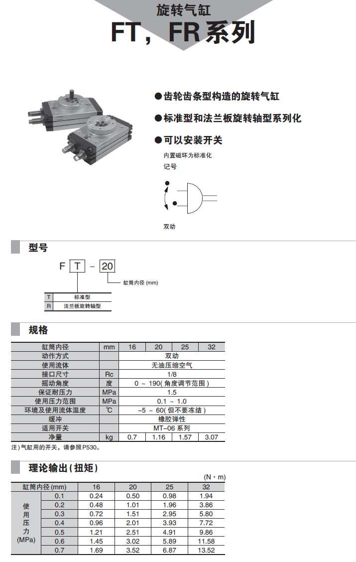 FT-16,FT-20,FT-25,FT-32,FR-16,FR-20,FR-25,FR-32,旋轉(zhuǎn)氣缸