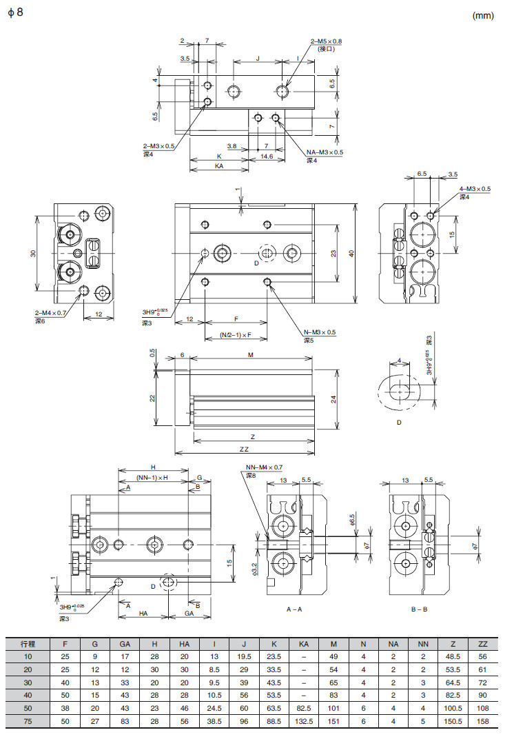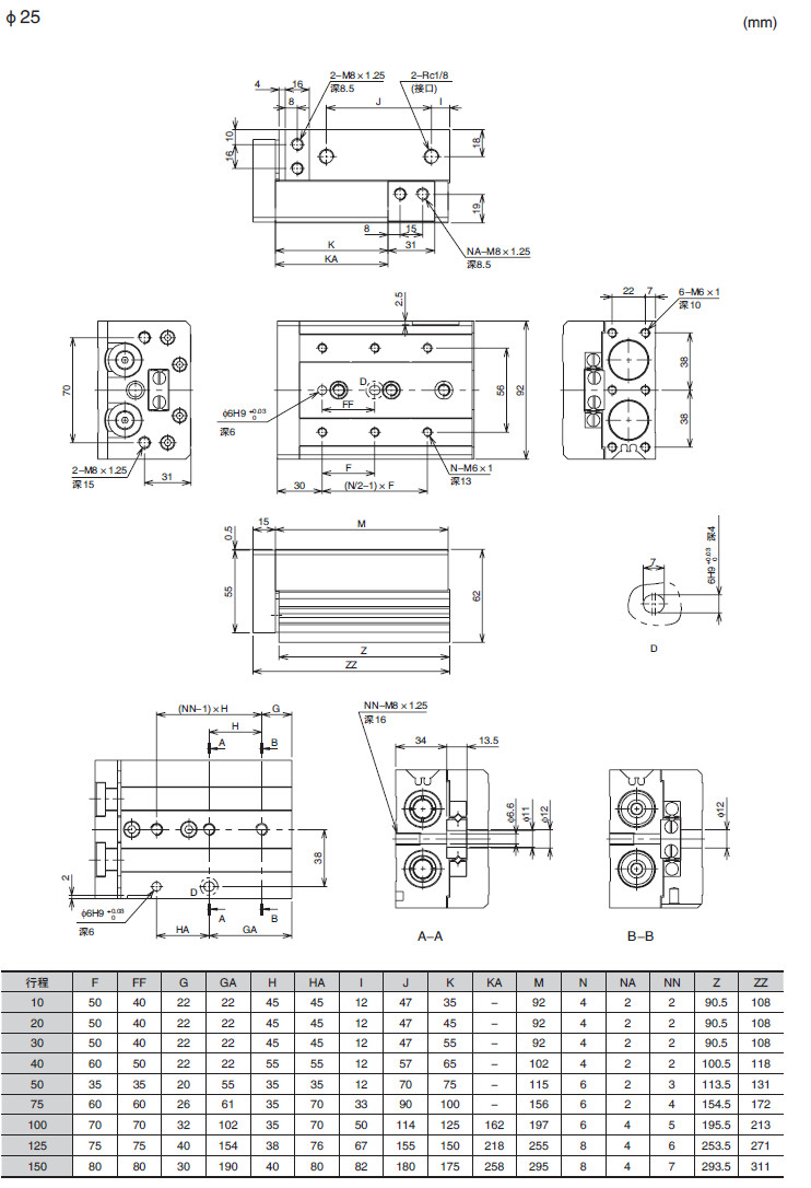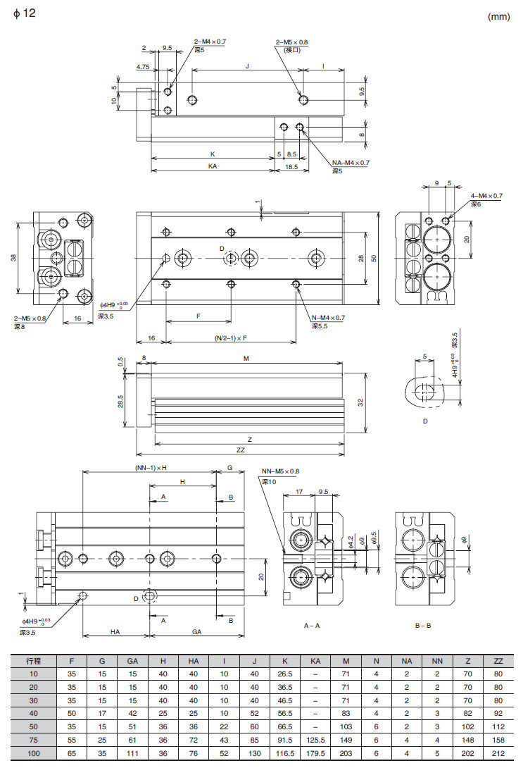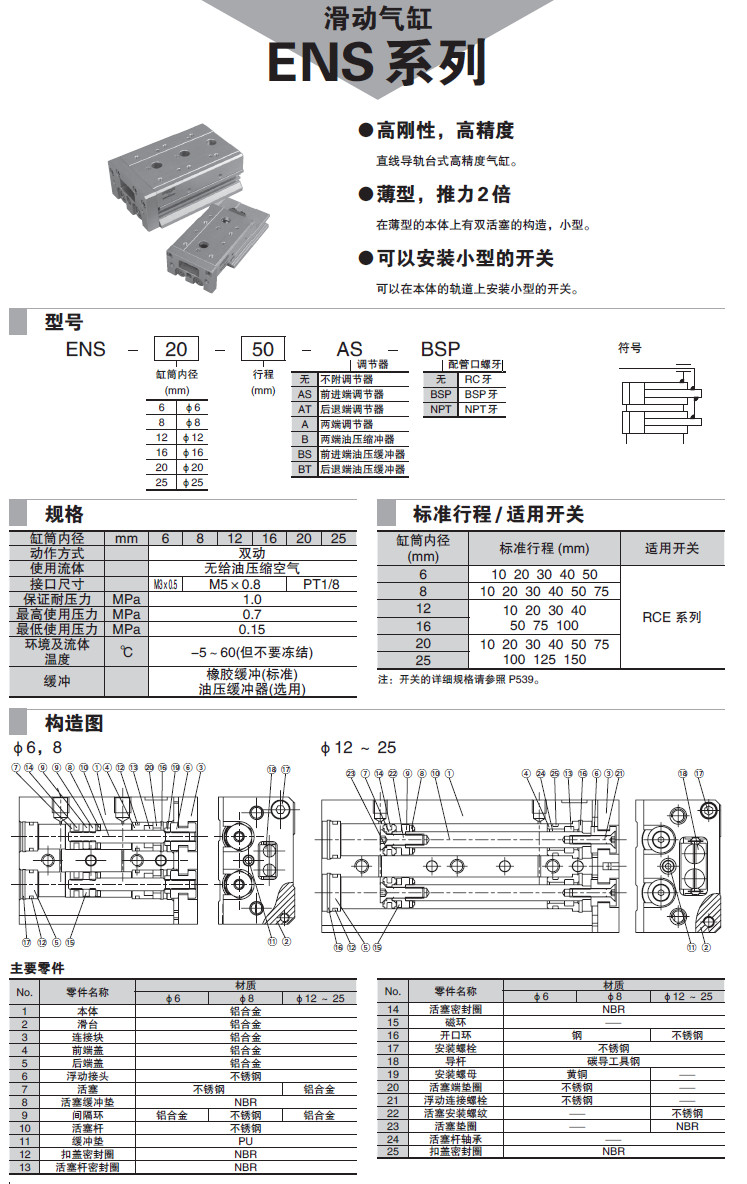 ENS-6,ENS-8,ENS-12,ENS-16,ENS-20,ENS-25,滑動氣缸