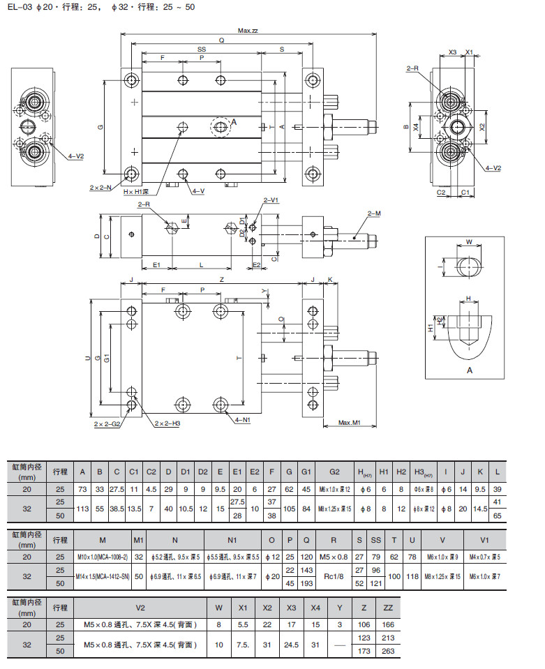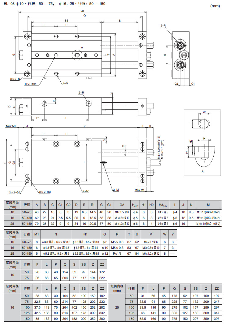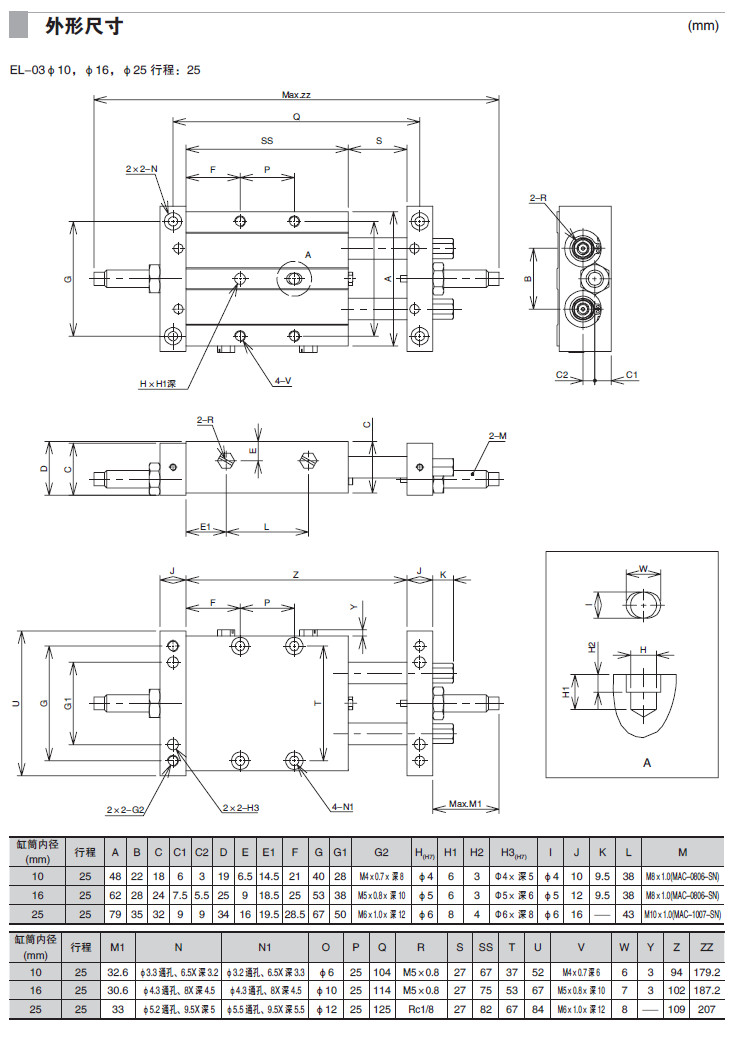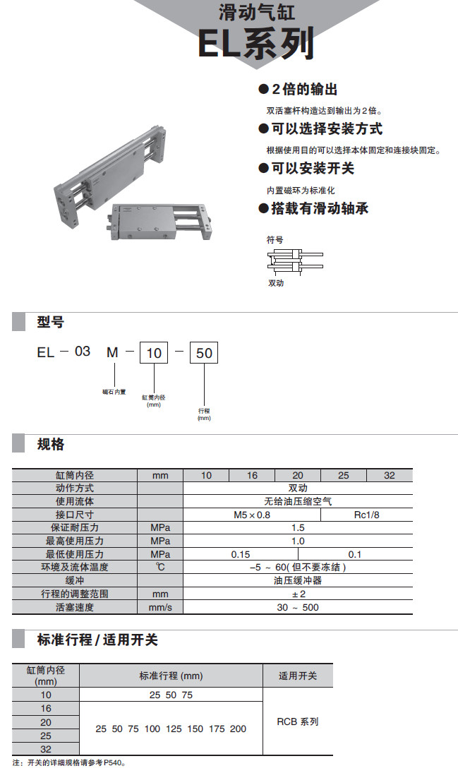 EL-03M-10,EL-03M-16,EL-03M-20,EL-03M-25,EL-03M-32,滑動(dòng)氣缸