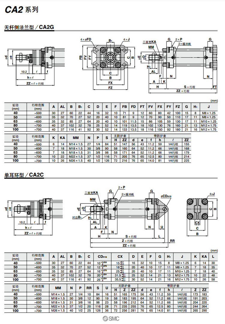 CDA2L80-700,CDA2L100-700,CDA2F80-700,CDA2F100-700,CDA2G80-700,CDA2G100-700,CDA2C80-700,CDA2C100-700,SMC標(biāo)準(zhǔn)型氣缸