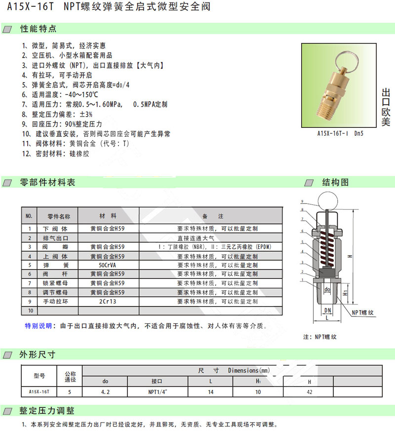 A15X-16T-DN5,彈簧全啟式微型安全閥