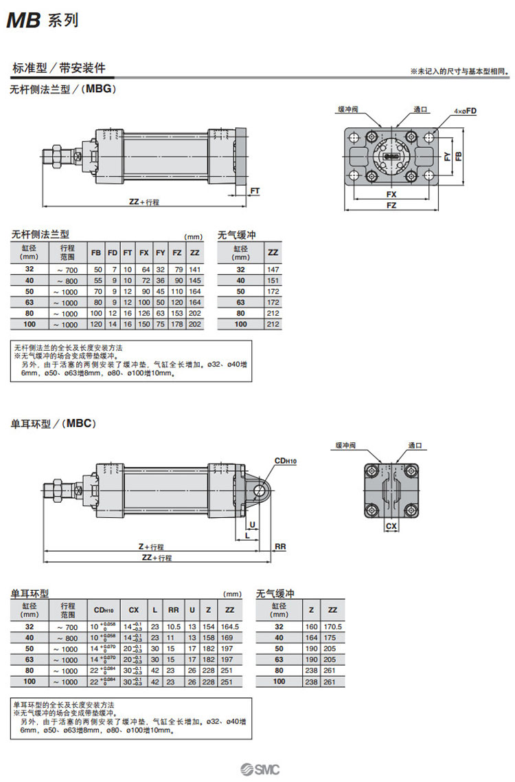 MBB32-25Z,MBL32-25Z,MBF32-25Z,MBG32-25Z,MBC32-25Z,MBD32-25Z,MBT32-25Z,SMC單桿型氣缸