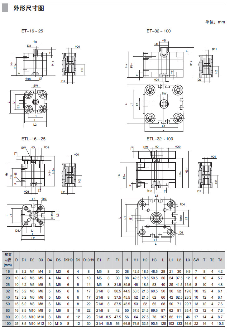 ET-40-5-A,ET-40-10-A,ET-40-15-A,ET-40-20-A,ET-40-25-A,薄型氣缸