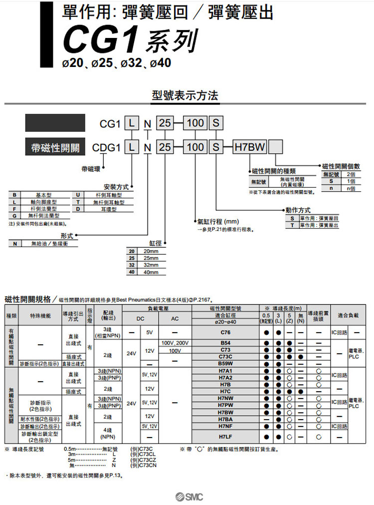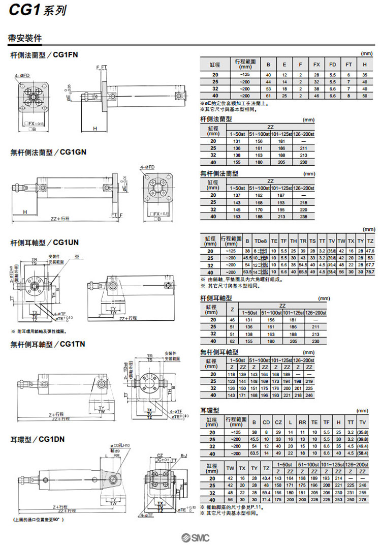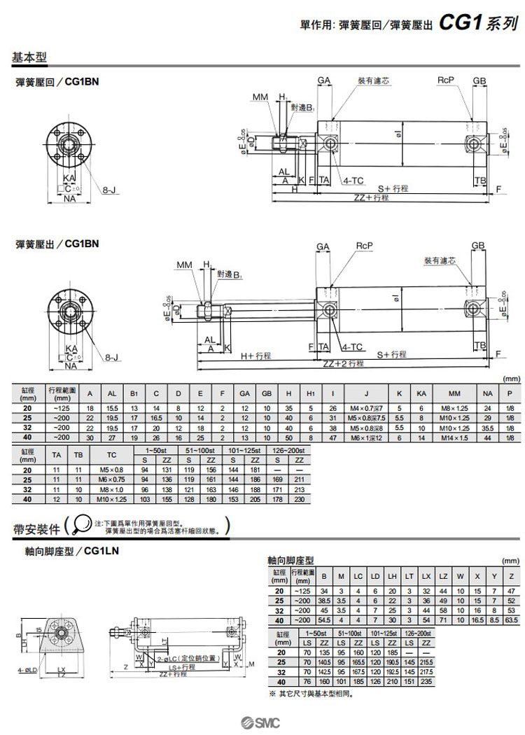 CG1BN40-200T,CG1LN40-200T,CG1FN40-200T,CG1GN40-200T,CG1UN40-200T,CG1TN40-200T,CG1DN40-200T,SMC單作用氣缸