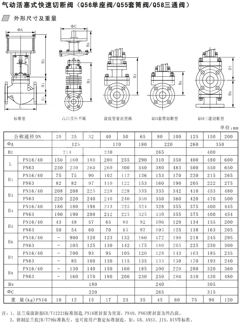 Q56-16C,Q56-63C,Q55-40C,Q55-63C,Q58-16C,Q58-40C,氣動(dòng)活塞式快速切斷閥
