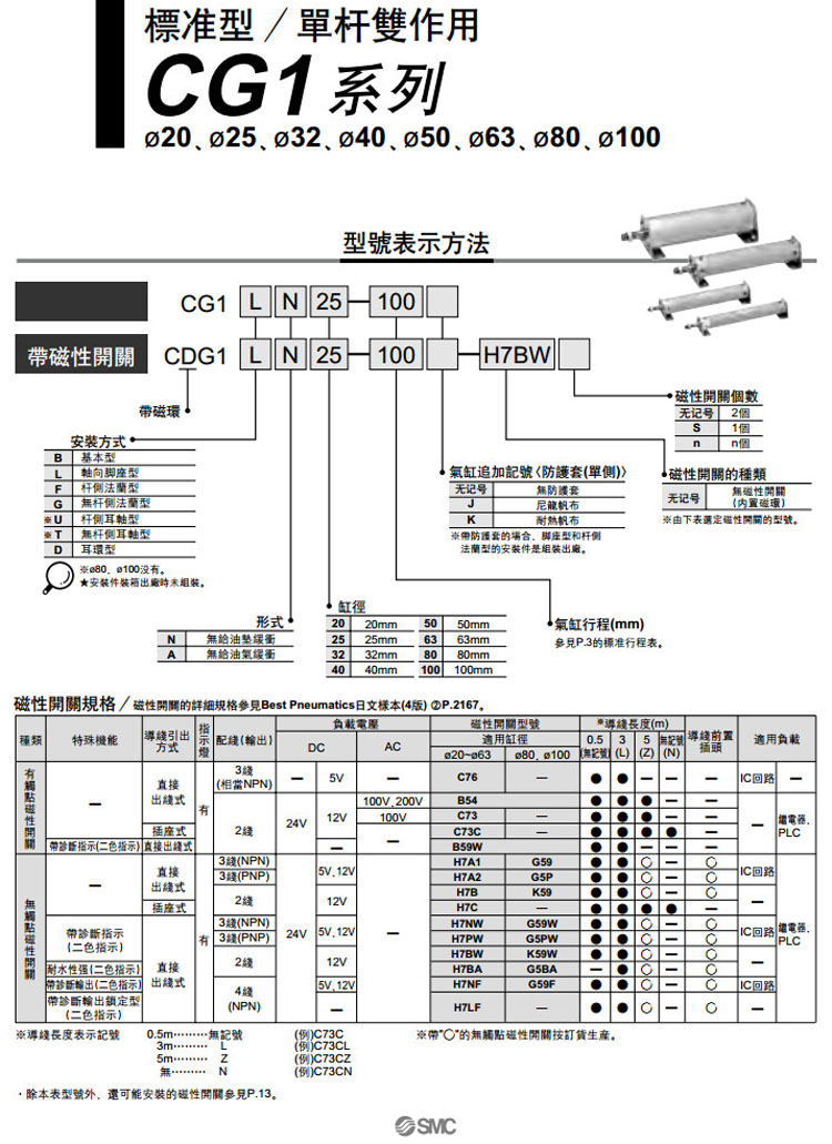 CG1BN20-25,CG1BN20-50,CG1BN20-75,CG1BN20-100,CG1BN20-125,CG1BN20-150,CG1BN20-200,