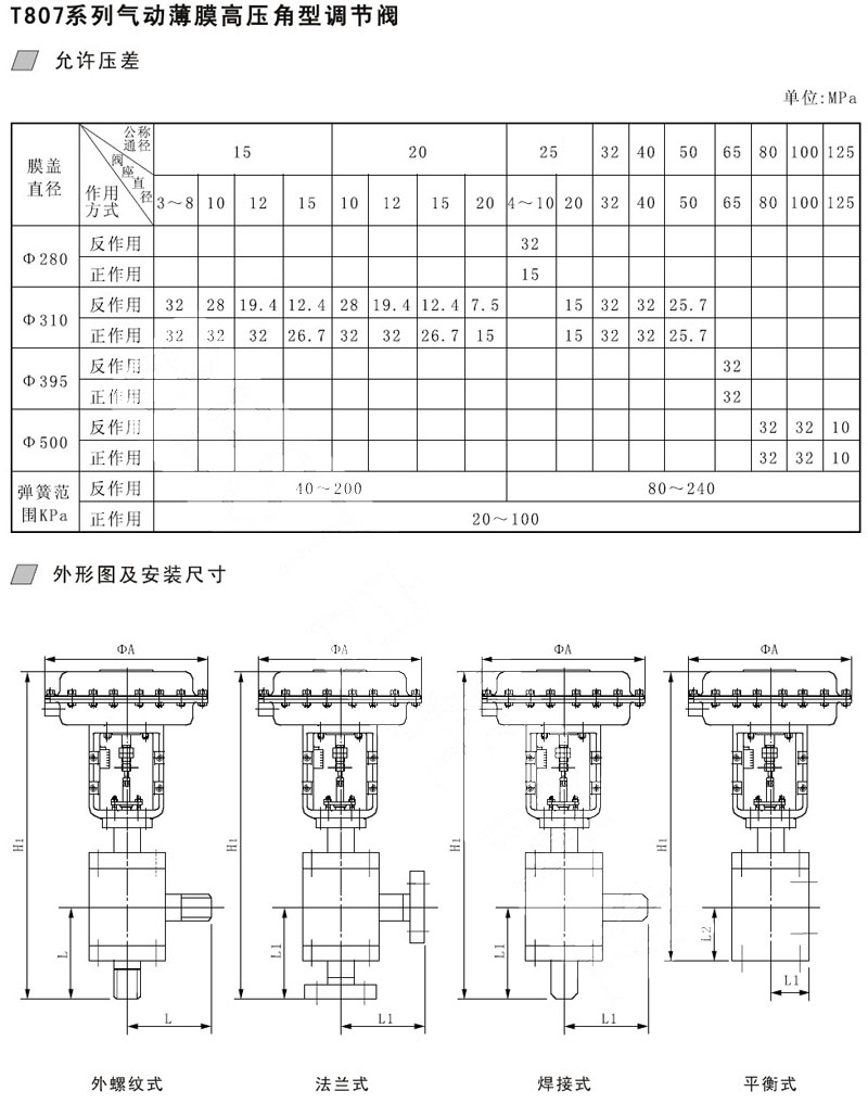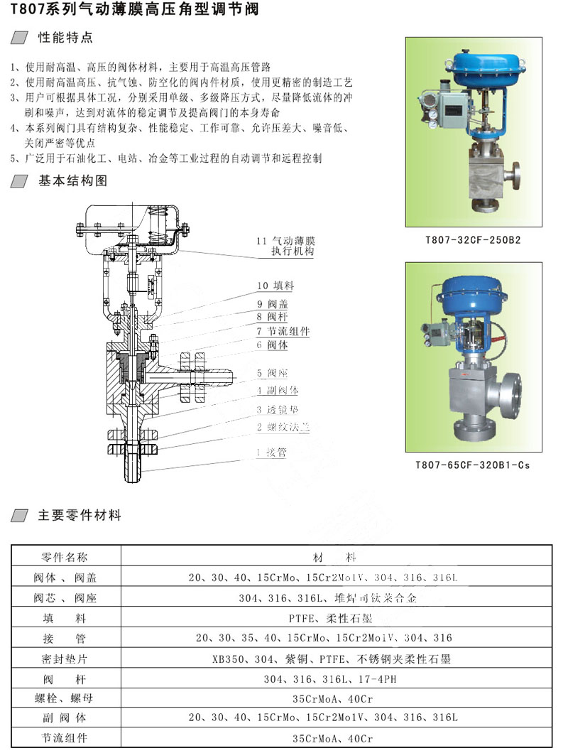 T807-16C,T807-16B,T807-22C,T807-22B,T807-25C,T807-32B,氣動薄膜高壓角型調(diào)節(jié)閥 |