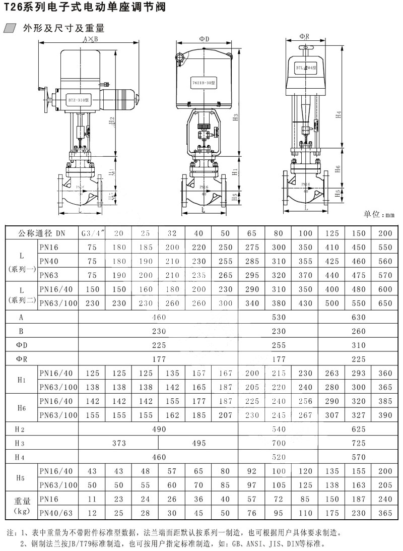 T26-16C,T26-40C,T26-63C,T26-100C,T26-16B,T26-40B,T26-63B,電動(dòng)單座調(diào)節(jié)閥