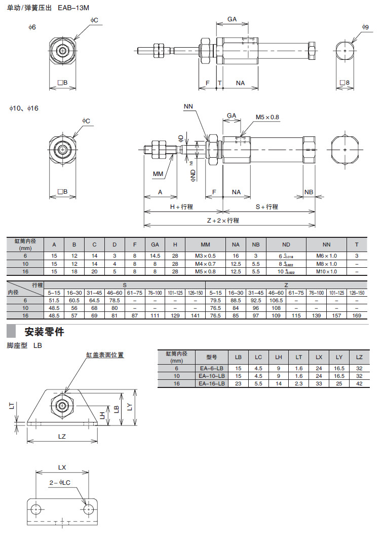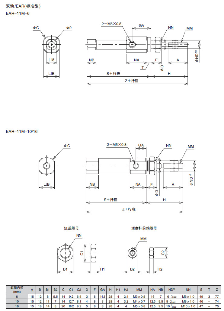 EAR-11M,EAR-13M,EAR-15M,EAB-11M,EAB-13M,EAB-15M,EAD-11M,EAD-13M,EAD-15M,小型氣缸