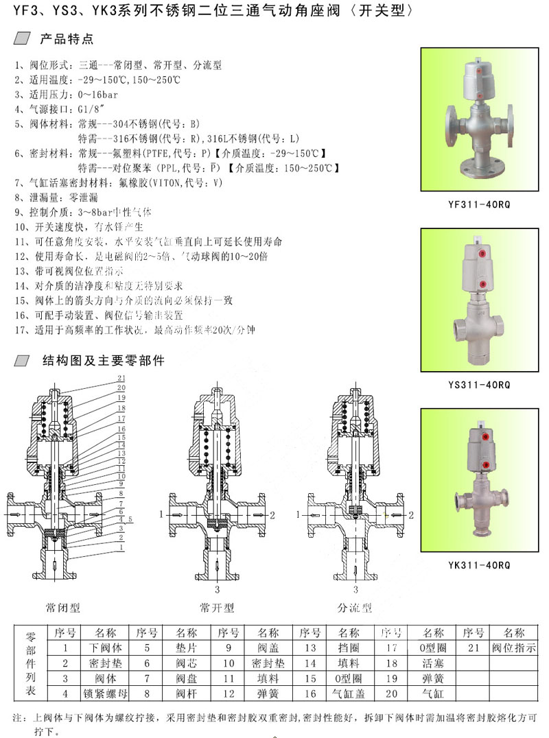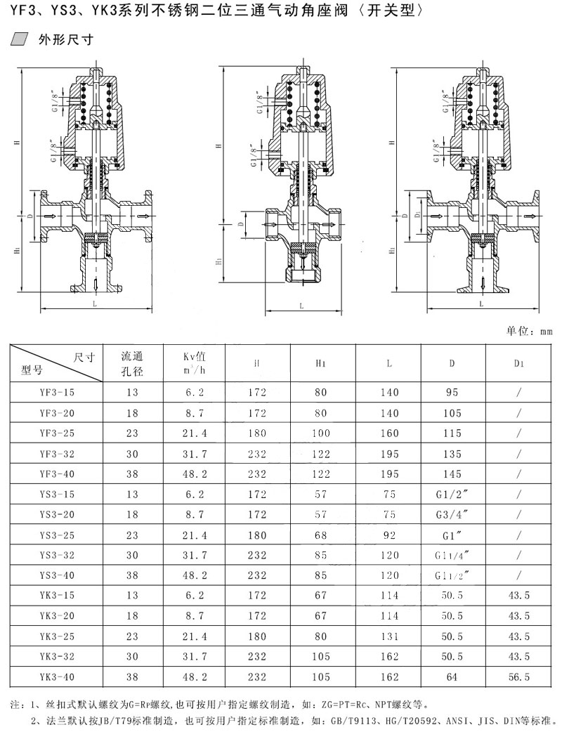 YF3-15,YF3-20,YS3-25,YS3-32,YK3-32,YK3-40,氣動(dòng)角座閥