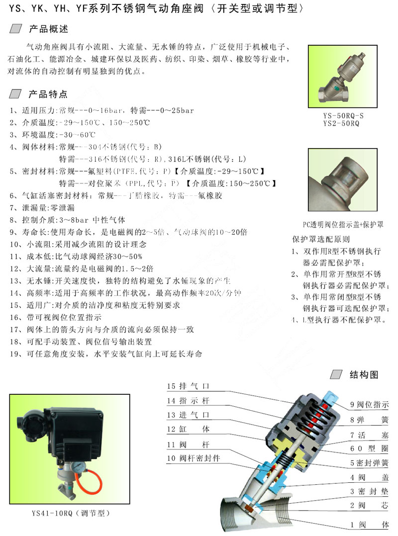 YS-15,YS-20,YK-25,YK-32,YH-40,YH-50,YF-65,YF-80,不銹鋼Y型角座氣動閥