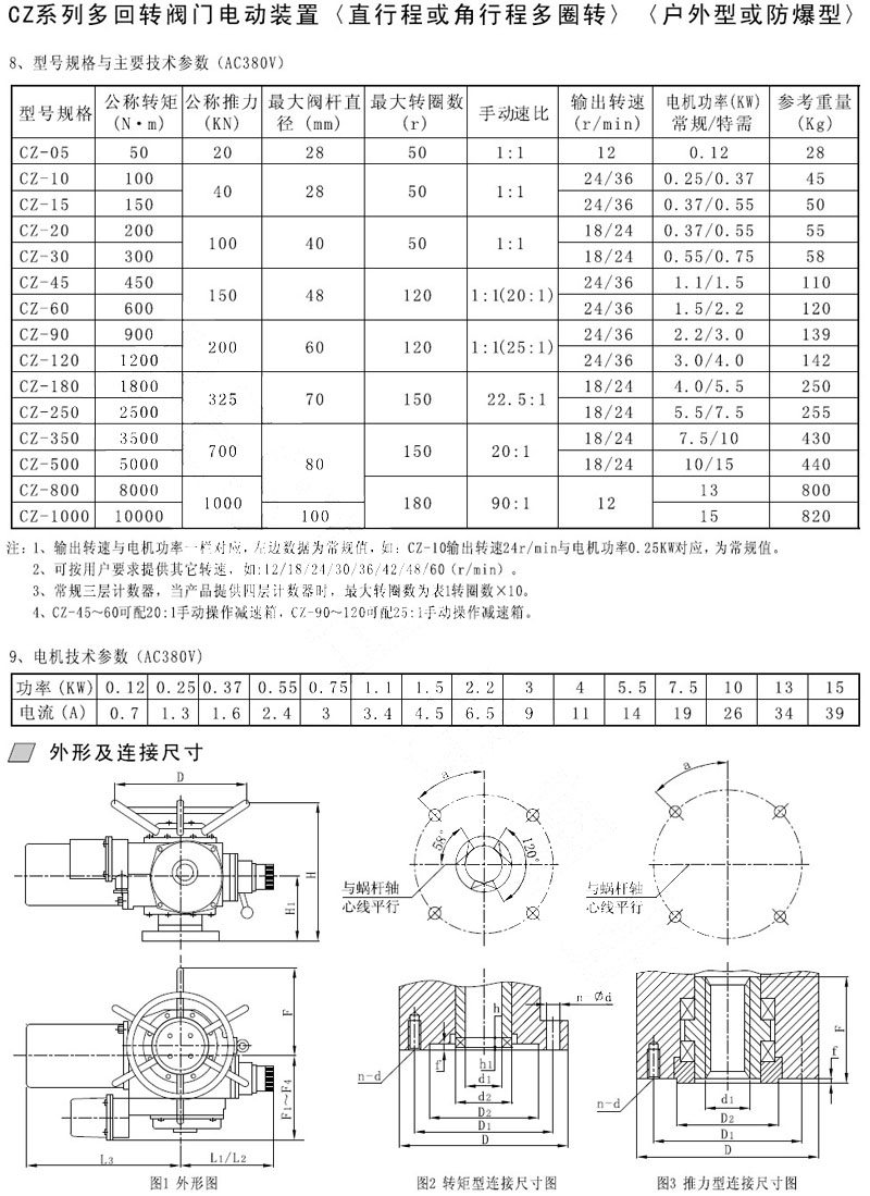 CZ-05,CZ-10,CZ-15,CZ-20,CZ-30,CZ-45,CZ-60,CZ-90,CZ-120,閥門電動裝置