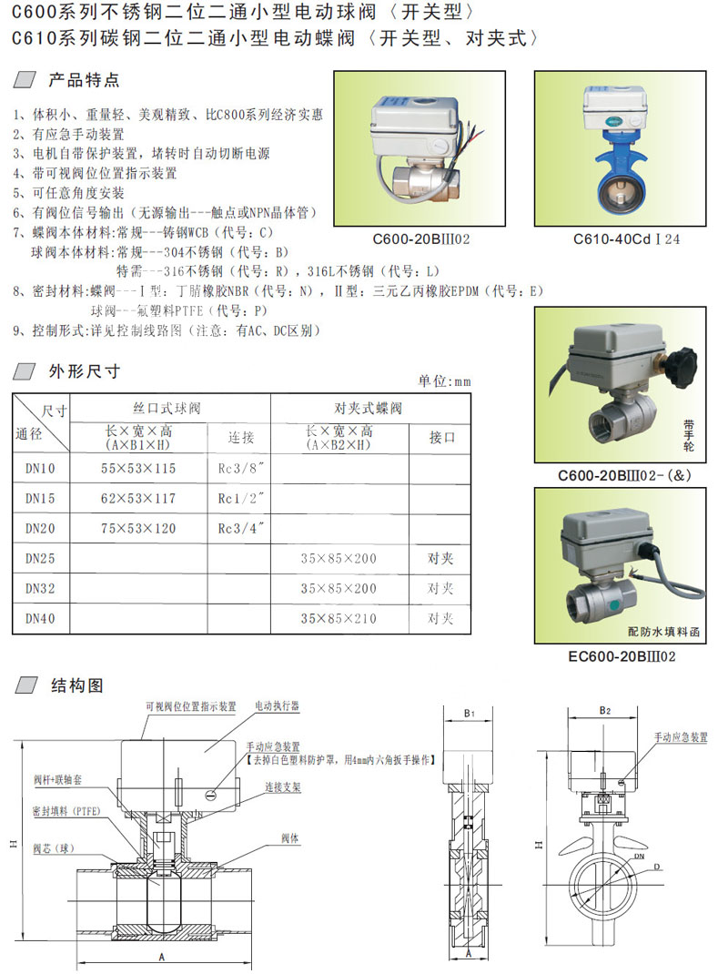 C600-10,C600-15,C600-20,C610-25,C610-32,C610-40,二位二通小型電動閥 |