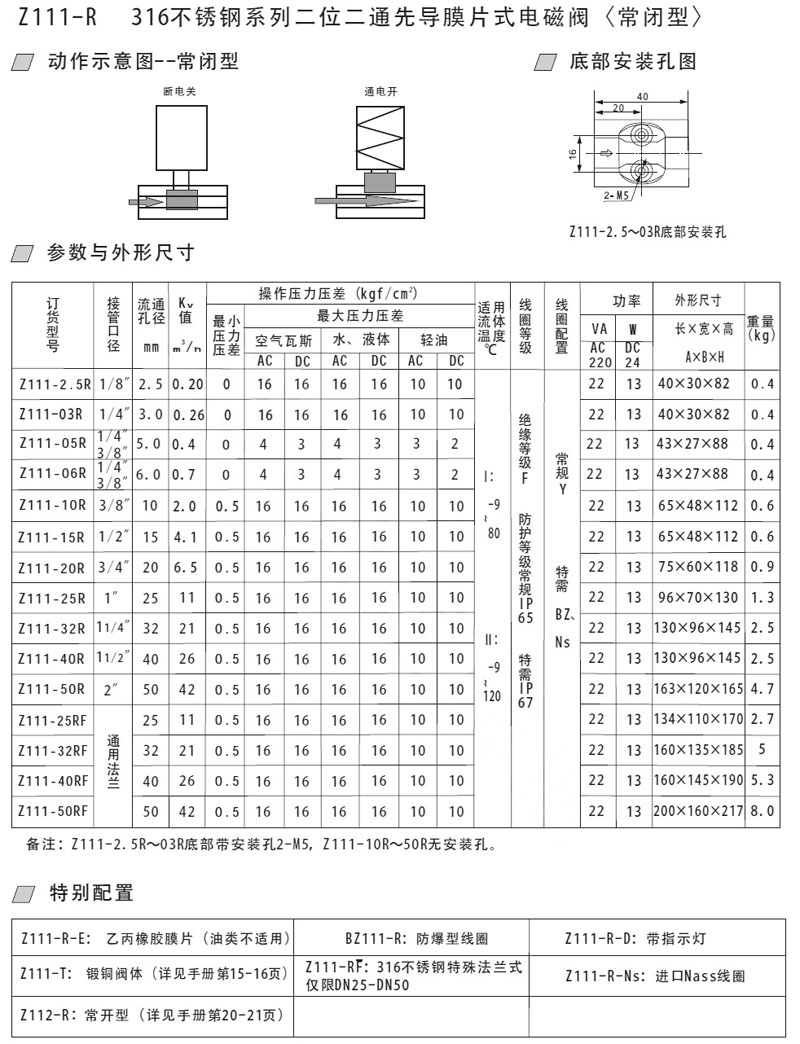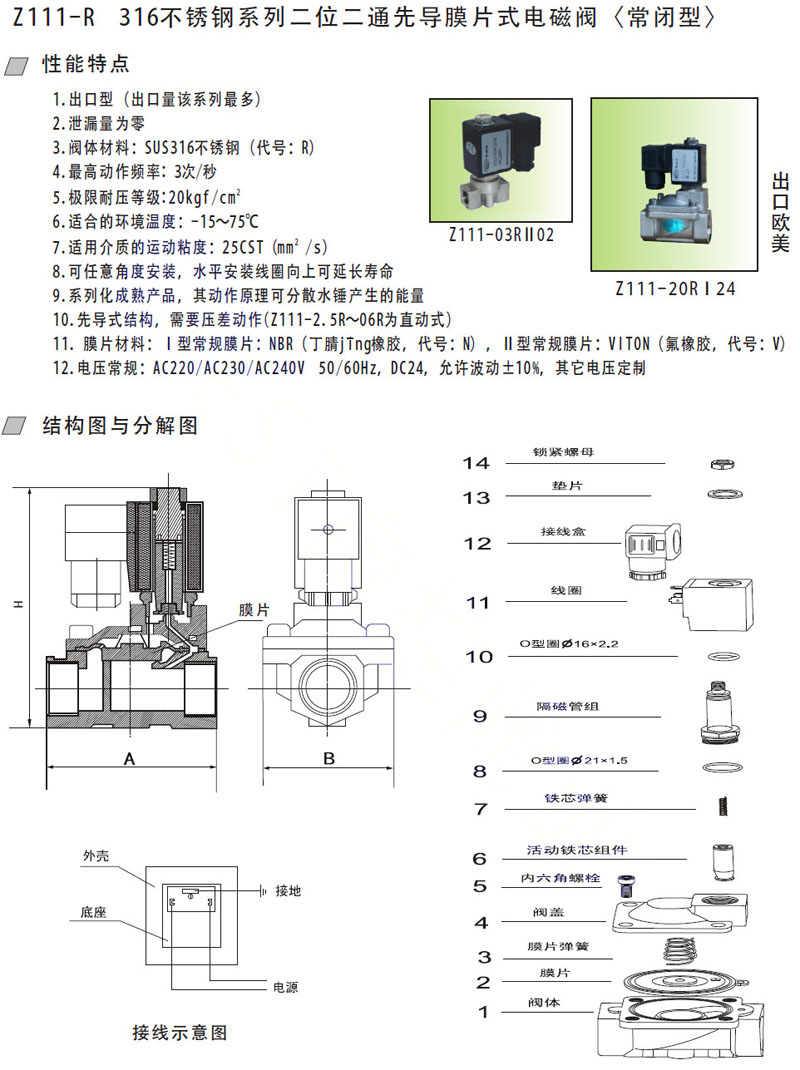 Z111-2.5R,Z111-03R,Z111-05R,Z111-06R,Z111-25RF,Z111-32RF,不銹鋼先導(dǎo)膜片式電磁閥