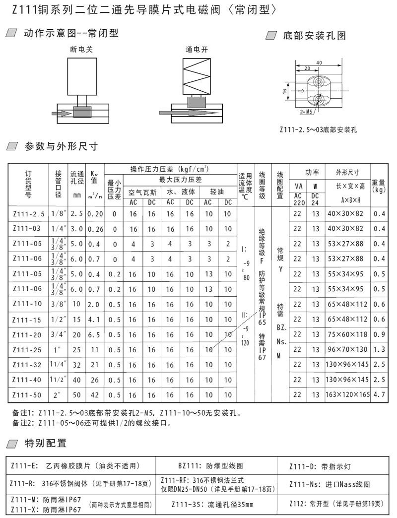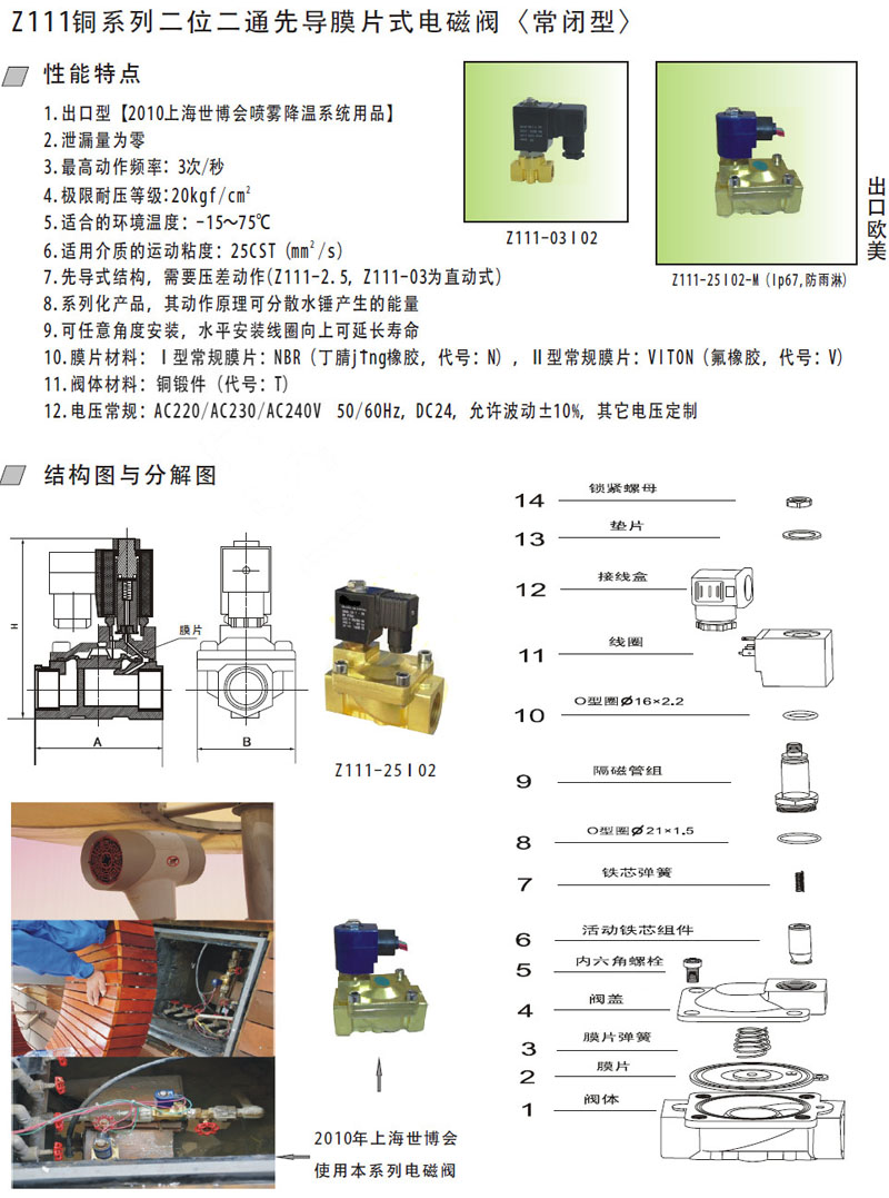 Z111-2.5,Z111-03,Z111-05,Z111-06,Z111-10,Z111-15,Z111-20,Z111-25,先導(dǎo)膜片式電磁閥