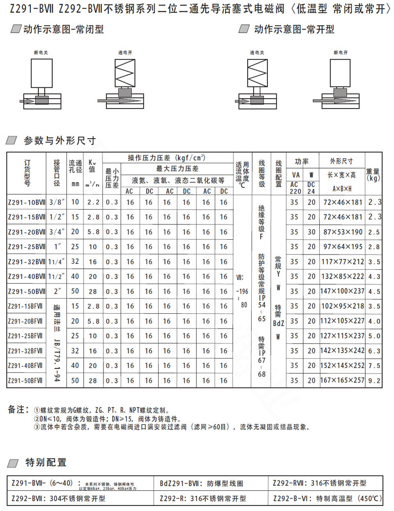 Z291-10BVII,Z291-15BVII,Z291-20BVII,Z291-25BFVII,Z291-32BFVII,不銹鋼先導(dǎo)活塞式電磁閥