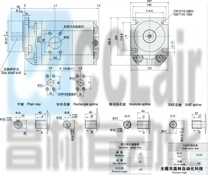 : SAE花鍵 H: 矩形花鍵 X: 漸開(kāi)線花鍵
