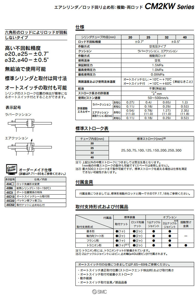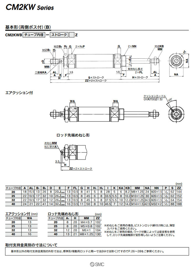 CM2KWB,CM2KWL,CM2KWF,CM2KWU,CDM2KWB,CDM2KWL,CDM2KWF,CDM2KWU,CM2KWB20-25,CDM2KWB20-25,SMC標準型氣缸