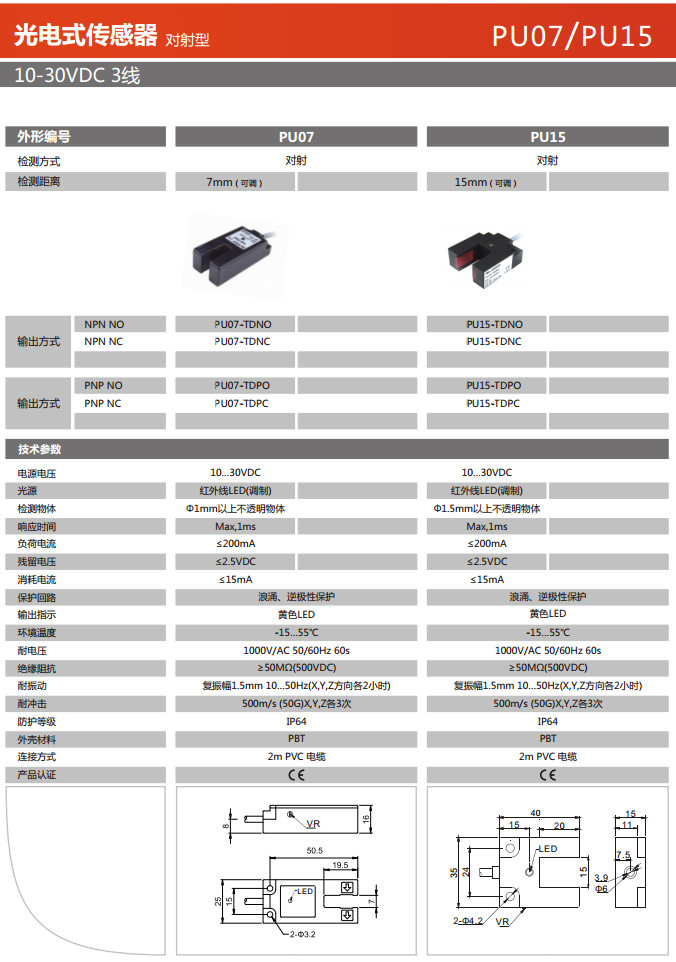 PU07-TDNO,PU07-TDNC,PU07-TDPO,PU07-TDPC,PU15-TDNO,PU15-TDNC,PU15-TDPO,PU15-TDPC,光電式傳感器